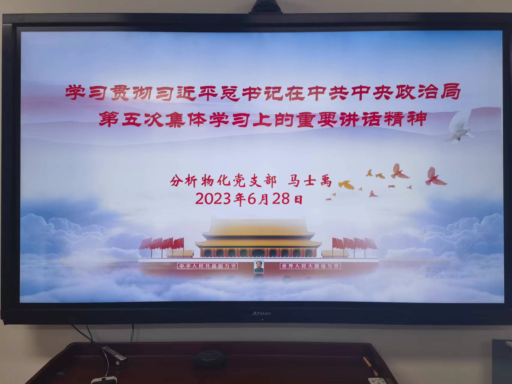 6月28日下午,91视频 分析物化党支部开展了“学习贯彻习近平总书记在中共中央政治局第五次集体学习上的重要讲话精神”的主题党日活动。