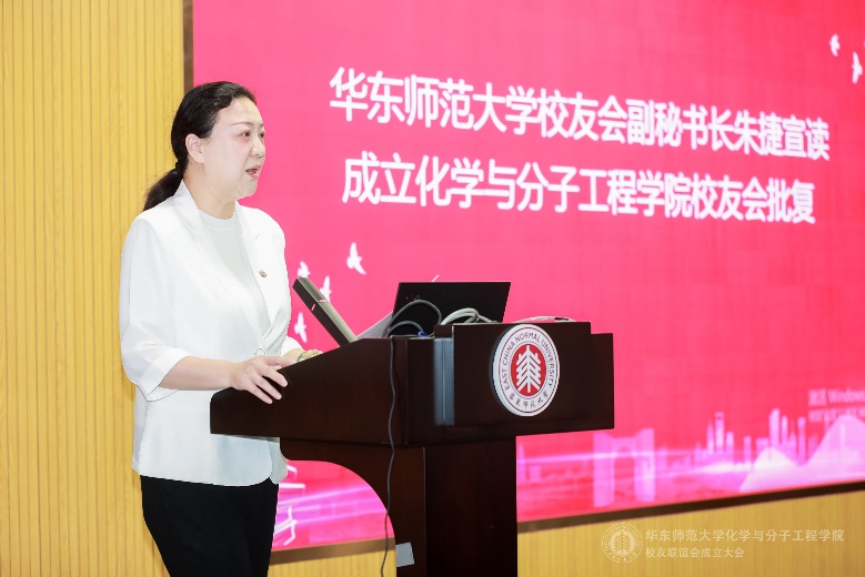 王婷婷代表学院校友联谊会筹备组汇报筹备工作。在学校校友会的关心指导下,学院于2023年初成立筹备组,深入走访校友,听取校友意见建议,召开了多场筹备会议,完成了校友联谊会章程的起草与意见征询,从企业界、高等教育、基础教育、文化事业单位四个领域邀请不同毕业届别、不同专业层次的校友组成首届校友理事会,并邀请学院首任院长何鸣元院士担任学院校友会顾问。