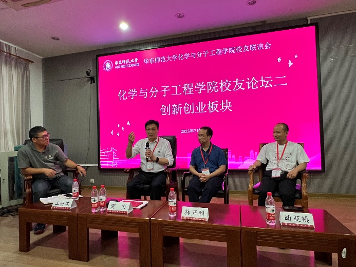 在随后的发言环节中,学院校友联谊会首任会长陈力回顾了自己1982年进入化学系的学习工作生活以及出国留学、创立罗氏中国研发中心以及创建华领医药的心路历程,向在化学系求学时对自己悉心指导的老师表示感谢,勉励在校同学要珍惜美好的校园生活,呼吁校友们共同继承和发扬母校的优良传统,助力母校发展,共享师大美好未来。