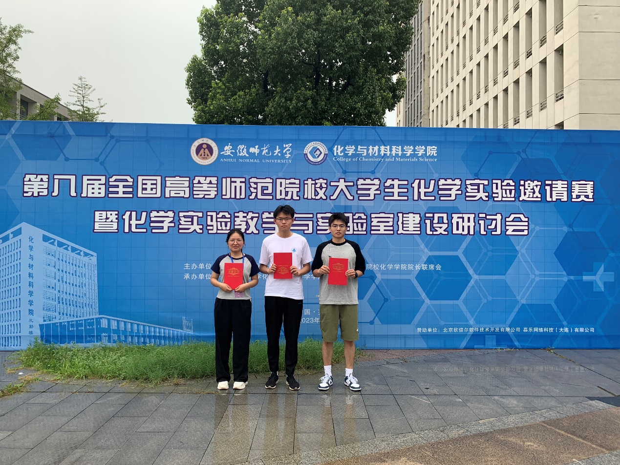 第八届竞赛由安徽师范大学承办,于7月14-16日在芜湖安徽师范大学花津校区举行,共有来自全国44所师范院校的135名学生参赛。经赛前抽签,2020级师范班黄友、菁英班吴薇薇和王英楚代表我校出赛,最终,黄友、吴薇薇荣获一等奖,王英楚获得二等奖!