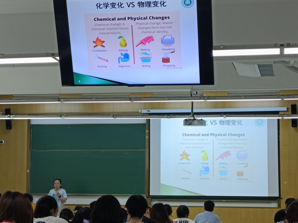 首先介绍的是王欢教授。王老师先向同学们提出了一个问题——什么是物理化学?紧接着,分别从定义、变化等方面详细阐述了物理与化学之间的区别与联系。然后又介绍二者的结合——物理化学,并形象地把它比作“解读化学奥秘的钥匙“。王欢教授通过举内燃机、合成氨等例子的方式将物理化学的研究内容具体详细地展示给了同学们。最后,又将学院各个物理化学的课题组一一向同学们介绍,鼓励大家进入自己感兴趣的课题组。