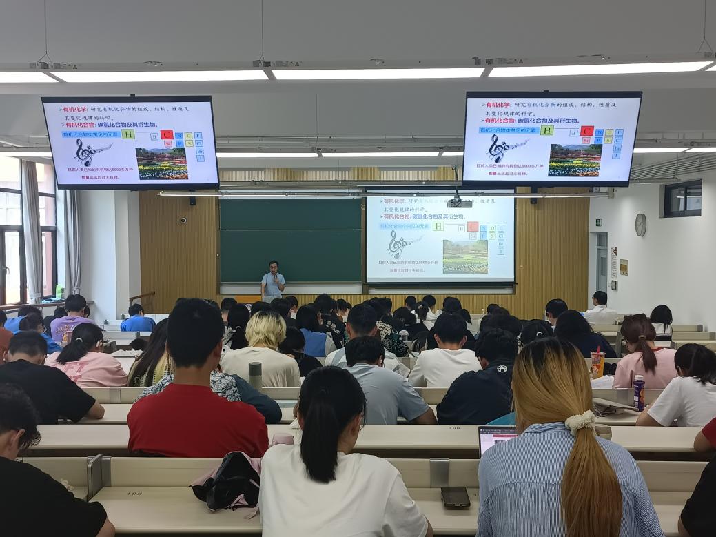 2024年5月29日下午,91视频 为大一的同学们举办了一场特别的活动——“走进学科组”系列讲座。这次的讲座是继上学期无机化学、分析化学讲座后,对另外的物理化学、高分子化学和有机化学的介绍。本次讲座,由张中海副院长主持,并有幸邀请到了物理化学学科组组长王欢教授,有机化学学科组组长刘路教授和高分子化学学科组张敏教授为同学们分别介绍这三大化学学科。同学们也都热情满满,讲台之下座无虚席。
