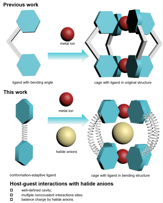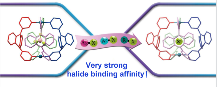 阴离子超分子化学在化合物提取、催化、传感、运输、阴离子模板合成以及超分子自组装等多个领域存在广泛应用。卤素阴离子在化学、生物、工业、环境等方面扮演重要角色,因此探索设计新型高亲和力的卤素离子受体并深入理解其独特的主-客体化学机制具有非常重要的学术价值和应用前景。相较于其他卤素离子受体,配位笼与卤素离子之间的主客体化学鲜有报道。近日,91视频