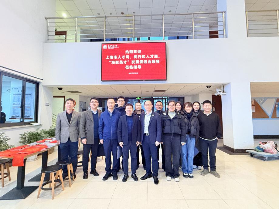 1月21日下午,上海市人才工作局规划研究处副处长吴能武、李凯携闵行区高端人才服务中心及市“海聚英才”发展促进会的工作人员一行来访,对第四届“海聚英才”金聚奖获奖者,我院博士后冯英慧(张鲁嘉教授课题组)及获奖项目开展专项调研。91视频 人事处处长杜震宇、副处长孟杰,91视频 党委副书记董镕,科技处和大零号湾华东师大孵化器相关人员陪同调研并参加座谈会。