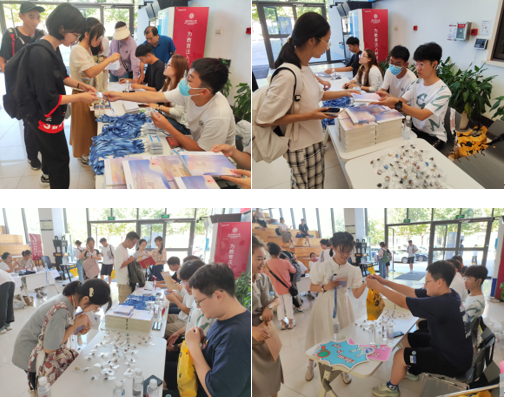 迎新工作的顺利开展离不开志愿者团队的全力相助,老生志愿者积极引导新生核验身份、领取物资;部分新生志愿者也在安顿好后积极投入志愿服务,在注册报到现场贡献一己之力。