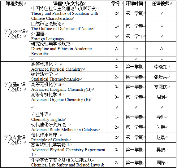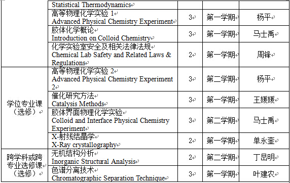 (二) 掌握化学学科扎实的基础理论知识、系统的物理化学专业知识和熟练的实验技能;深入了解物理化学的发展现状和研究动态;具有从事物理化学教学、科研和相关专门技术工作的能力。