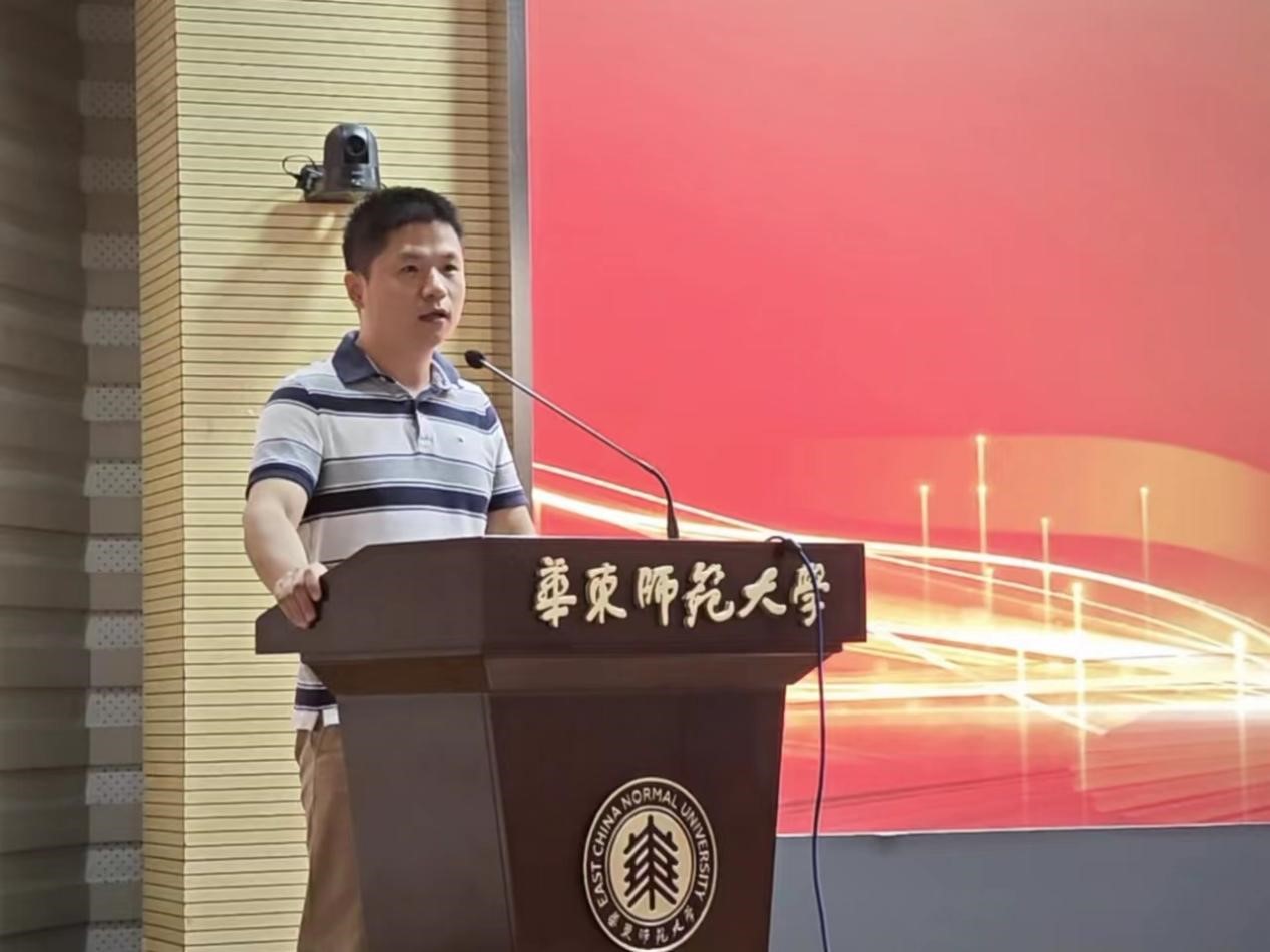 张琪伟教授作为教师代表发言,他讲到同学们进入新阶段要积极适应角色转换,不仅要学会学习,更要学会做人。他建议大家要主动学习、向大师学习,提高自我修养,完善人格构建,树立正确价值观,掌握扎实科学技能。张老师引用了一个形象生动的例子勉励同学们创造真正的、推动国家发展的价值,树立正确价值观,培养高级使命感、责任感。最后,张老师祝福大家在华师大的学习生活中,建立友谊、锻炼意志、努力创新、勇攀高峰。