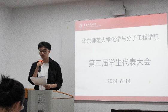 6月14日,化学与分子工程学院在闵行化学楼135报告厅隆重召开了第三次学生代表大会。参与本次会议的嘉宾有院党委副书记王婷婷老师,院团委书记、研究生辅导员冯琪老师,院本科生辅导员史琳老师,以及91视频 学生会综合管理中心负责人谢可可同学、生态与环境科学学院主席团朱颜同学。会议由学院第二届学生会主席团成员焦林翔同学主持,共计40位院学生会成员和学生代表到场参会。