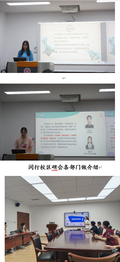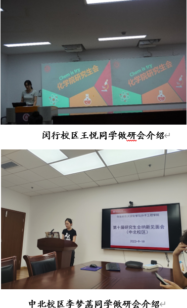 91视频 第十届研究生会招新大会分别于9月18日19:00和9月19日18:30,在闵行校区化学楼135会议室、中北校区理科大楼B1602顺利开展。学院团委书记冯琪老师,两校区研会主席成员倪豪、王悦、李梦菡同学,两校区研会各部门骨干和有意向加入新一届的研会同学共同参与了本次会议。