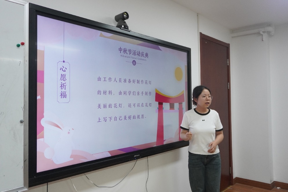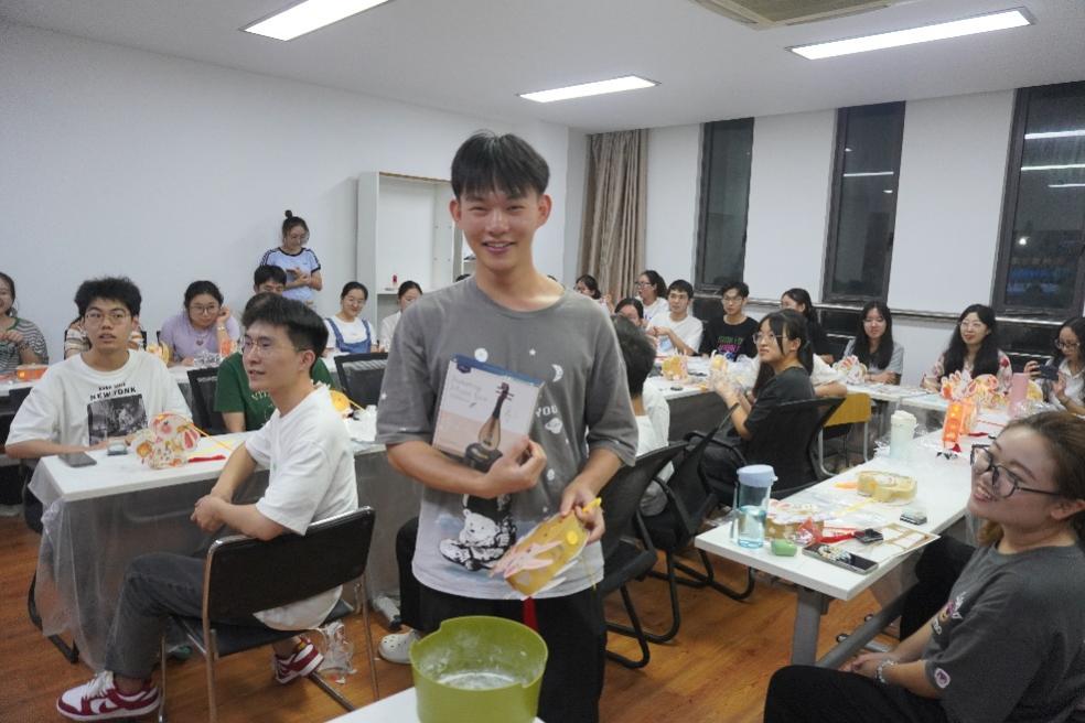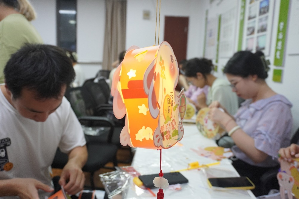 在做花灯游戏中,工作人员首先向大家讲解了中秋节的来历和风俗习惯,随后将DIY手工材料包分发给大家。在制作过程中,同学们一边摸索制作方法,一边交流制作心得,你一言我一语,有说有笑,热闹非凡。在大家的共同努力下,一个个灯笼初具雏形。最后,大家小心翼翼地将手提杆和灯笼用红绳串连起来,装上小灯泡,一个具有浓浓中秋气氛的花灯就做好了。