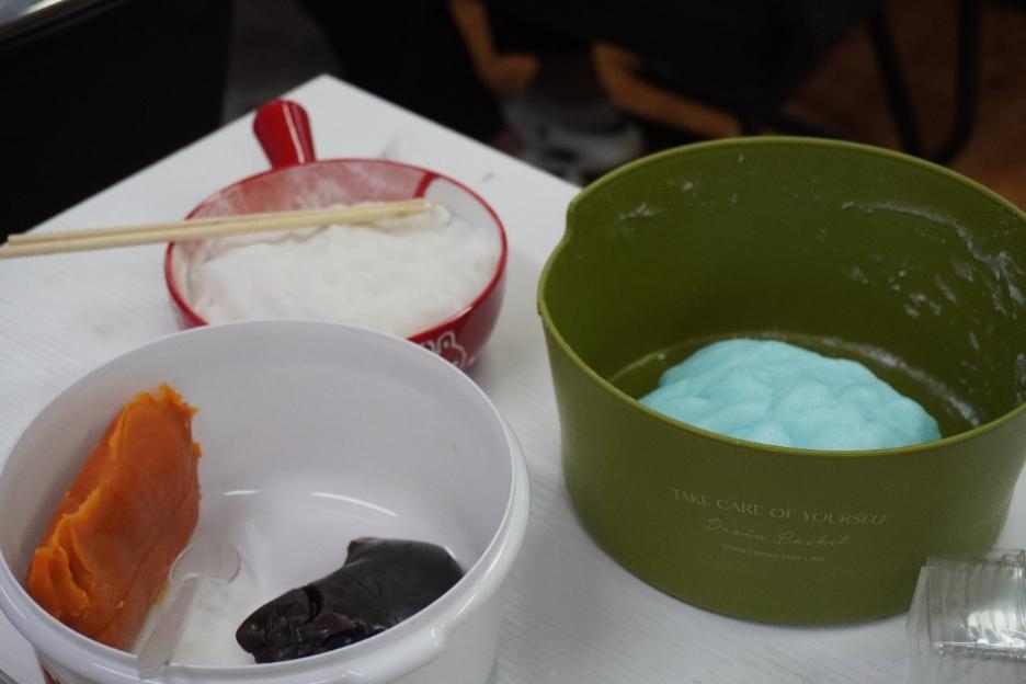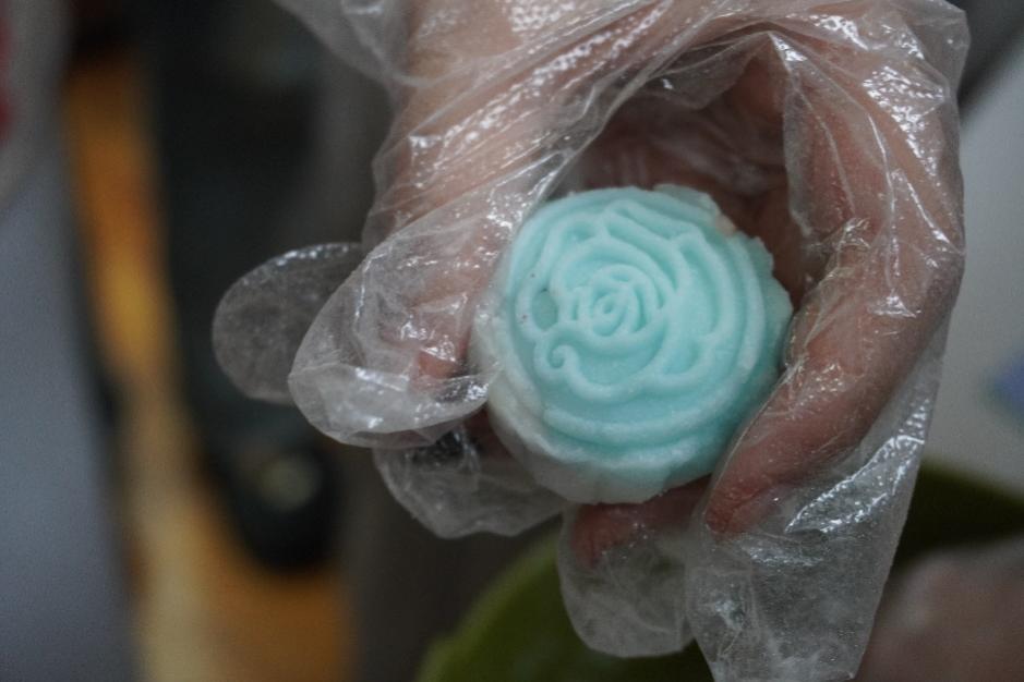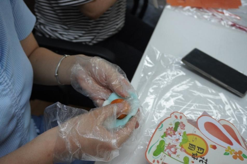 在闵行的活动现场,最受同学们欢迎的活动莫过于做冰皮月饼。