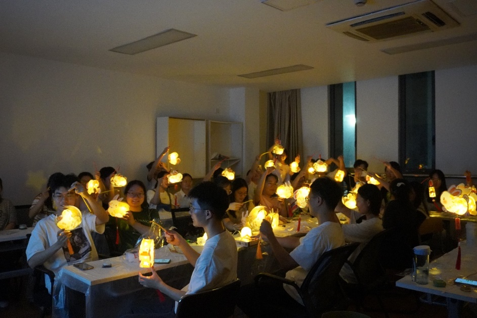 活动的最后,在夜幕的衬托下,同学们一起将手里的花灯点亮,期待中秋佳节的到来。