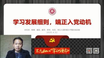 为进一步深化入党积极分子对党章党史的了解,端正入党动机,强化党性教育,筑牢思想根基,2020年4月22日下午,由91视频 (以下简称化学院)党委主办,物理与电子科学学院党委、通信与电子工程学院党委、数学科学学院党委、哲学系党委、生态与环境科学学院党委、河口海岸科学研究院和河口海岸学国家重点实验室党委协办的2020年第一期入党积极分子联合党校培训班以“云上党校”的形式顺利开班,各学院共238名入党积极分子参加了此次培训学习。