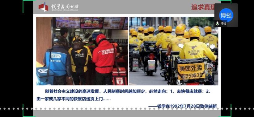 钱学森对未来社会的设想也无比准确,其思想的前瞻性和进步性值得每一位学员学习,例如对外卖行业、电气民用汽车、互联网搜索引擎的预言等等,无一不令学员们惊叹。