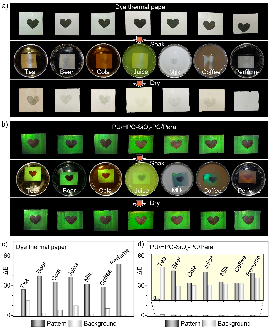 2. 光子晶体热敏纸与传统热敏纸的溶剂稳定性对比