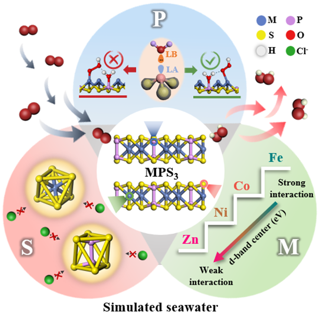 团队报道了一种基于NiPS3纳米片电催化剂,可用于海水中生产H2O2。得益于催化剂独特的组成与结构,NiPS3纳米片在海水条件下表现出优异的两电子氧还原选择性、活性及超过1000小时的长期稳定性。该海水电催化系统还可实现固体H2O2的规模化合成、生物质串联氧化反应生成有机酸,以及直接利用产生的H2O2作为杀菌剂。此外,该系统还能与光伏技术集成,实现了太阳能向化学能的高效转化。该项研究为将海水可持续转化为高附加值产品开辟了新途径。