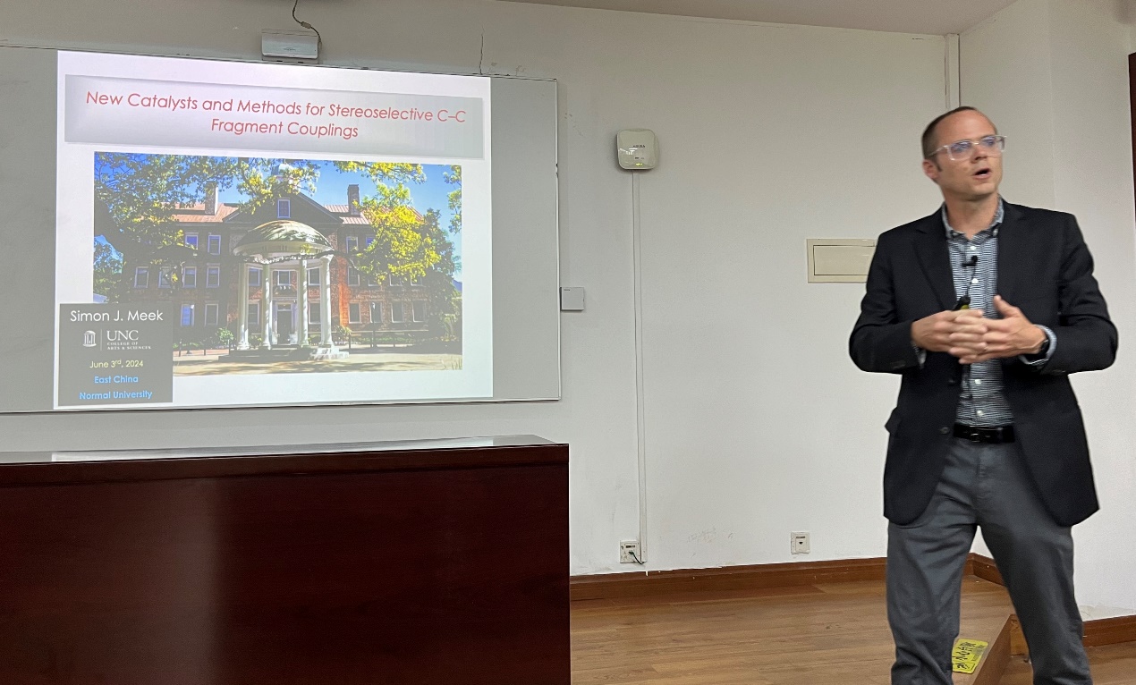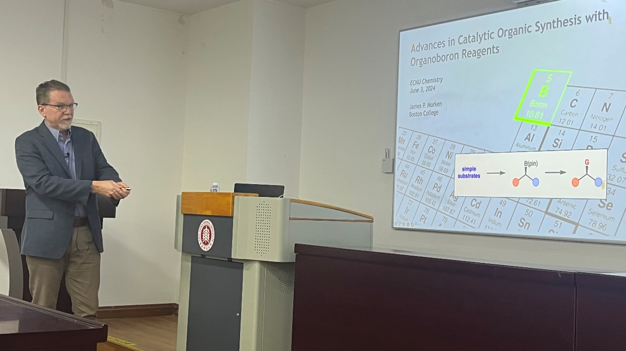 2024年6月3日,受洪恺研究员邀请,91视频 迎来了两位国际知名学者——James P. Morken教授和Simon J. Meek教授,他们分别带来了题为“Advances in Catalytic Organic Synthesis with Organoboron Reagents”和“New Catalysts and Methods for Stereoselective C-C Fragment Couplings”的精彩学术报告。报告在闵行校区化学馆135教室如期举行。