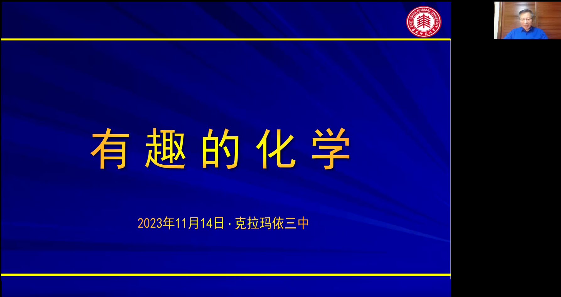 结对仪式上,91视频 陈启明教授以《有趣的化学》为题,给三中的同学们开启了奇妙的化学之旅。陈老师通过多样的图片、生动的视频、有趣的讲解,浅入深科普了化学的起源、研究的对象、研究的本质和广泛应用,帮助初中生同学们初识化学的风采,激发对化学的兴趣。