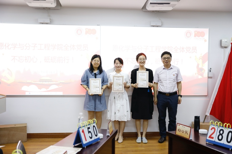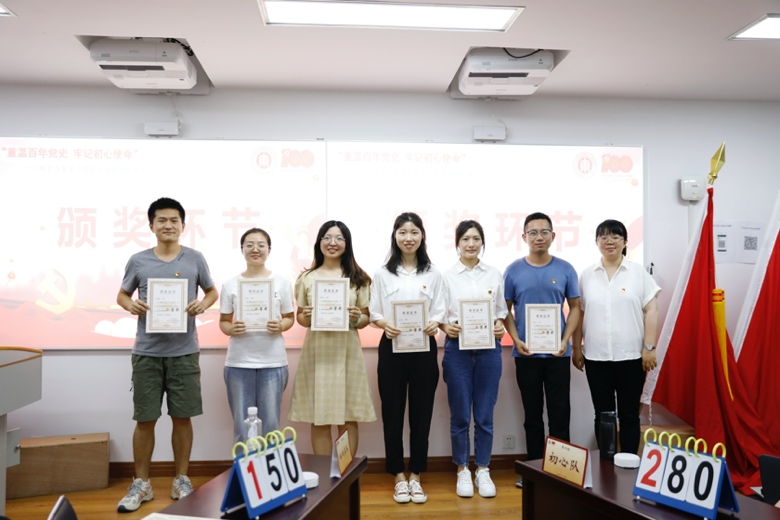 经过三个环节的激烈角逐,2020级中北研究生党支部、2019级中北研究生党支部、绿色化学和新药创制党支部代表队积分并列第一,三支代表队不得不通过加时赛决一胜负。经过激烈抢答,最终绿色化学和新药创制中心教师党支部代表队技高一筹,以精彩的表现拔得头筹;2019级中北研究生党支部和2020级中北研究生党支部代表队分别获得二等奖。闵行教师党支部代表队、闵行高年级和2018级研究生党支部代表队以及2020级闵行研究生党支部代表队分获三等奖。中北高年级和2018级研究生党支部代表队、2019级闵行研究生党支部代表队获得优秀奖。