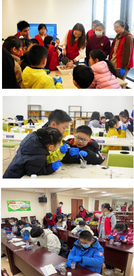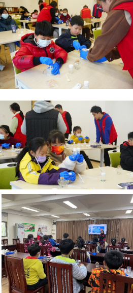 3月5日,91视频 与吴泾镇团委,联合紫竹半岛社区和嘉怡水岸社区,由化学院青年化学社和本科生党支部组成的“春风化雨”志愿者队,面向社区的小朋友、大朋友们开展了化学实验科普活动,共同制作“天气瓶”和“水中花园”小实验。