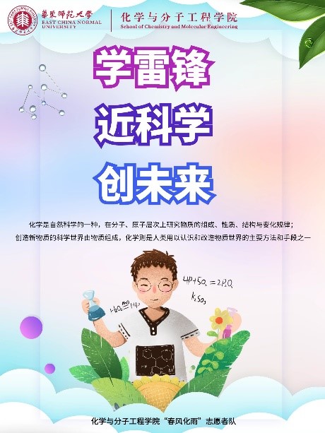 为深入学习贯彻党的二十大精神和习近平总书记对深入开展学雷锋活动作出的重要指示精神,深刻把握雷锋精神的时代内涵,让雷锋精神在新时代绽放更加璀璨的光芒,传承榜样力量,在全国第60个学雷锋纪念日来临之际,91视频 组织开展“学雷锋·近科学·创未来”化学科普活动进