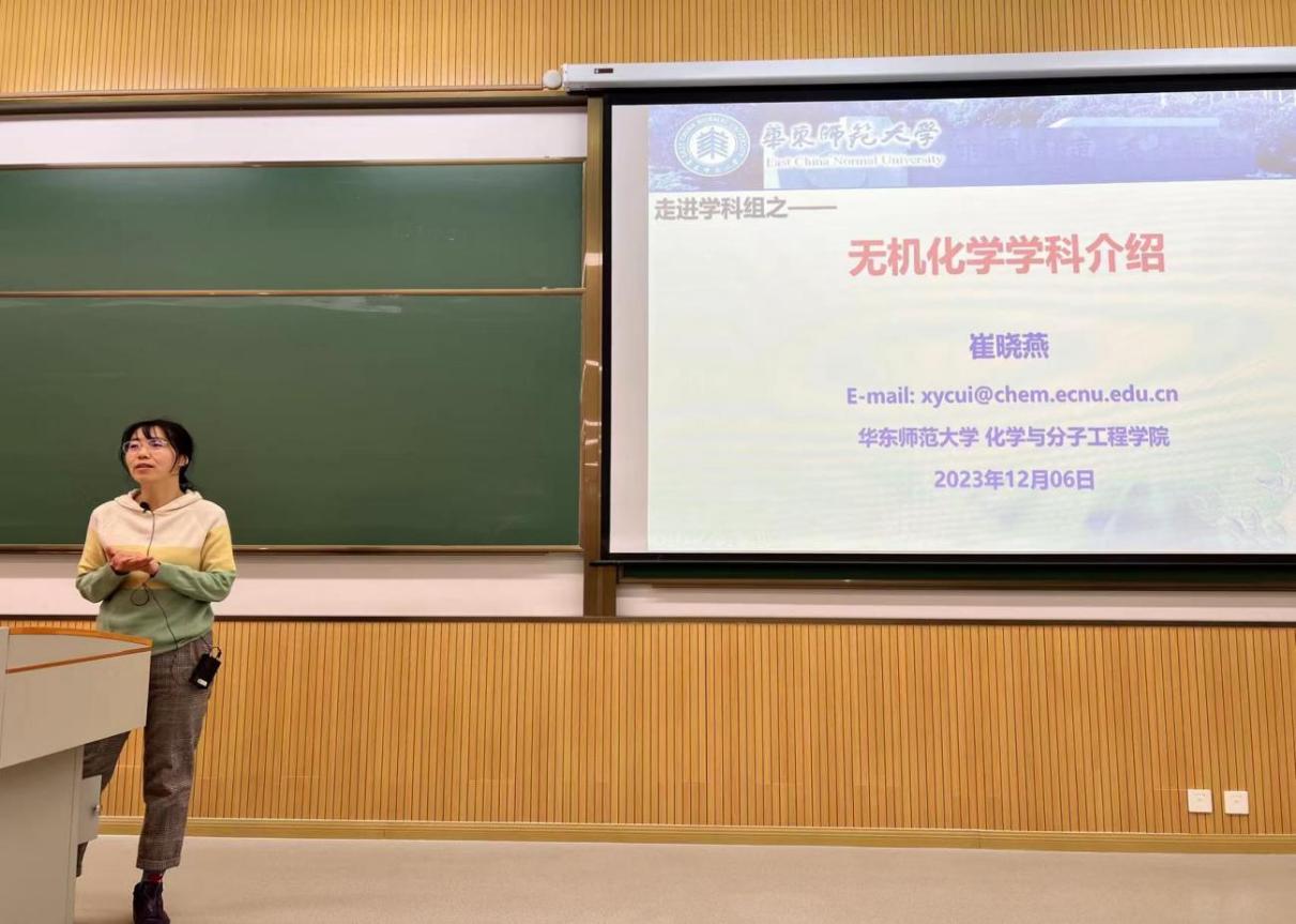 2023年12月6日下午,91视频 “走进学科组”系列讲座之“无机化学学科组介绍”和“分析化学学科组介绍”在华师大闵行校区四教111教室顺利举办。此次讲座由分管本科教学的副院长王媛媛教授主持,“无机化学学科组介绍”、“分析化学学科组介绍”则分别由无机化学学科组长崔晓燕教授、分析化学学科组长万晶晶教授主讲。