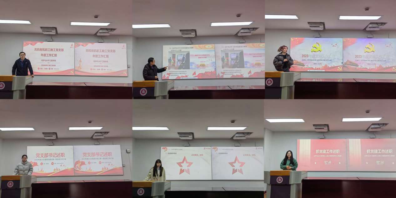 上海分子新药研究中心党支部宣传委员王梦雅、分析物化海水党支部书记马士禹、高分子实验中心党支部书记黄琨、无机有机职工党支部书记李德增、本科生党支部书记史琳,2021级普陀校区博士研究生党支部书记罗娟娟、2021级闵行校区博士研究生党支部书记朱韵、2022级普陀校区博士研究生党支部书记高志文、2022级闵行校区博士研究生党支部书记王诗迪、2021级普陀校区硕士研究生党支部书记张见闻、2021级闵行校区硕士研究生党支部书记王伟琛、2022级普陀校区硕士研究生党支部书记刘雅妮、2022级闵行校区硕士研究生第一党支部书记樊芝莹、2022级闵行校区硕士研究生第二党支部书记贺栖桐进行现场述职,十四位师生党支部书记围绕《91视频 党支部工作细则(试行)》要求,聚焦基层党支部“七个有力”建设标准,对2023年度支部书记履职情况进行了汇报,大家重点介绍了支部工作特色,查摆了存在的问题并在分析问题的基础上提出了后续工作目标和思路。