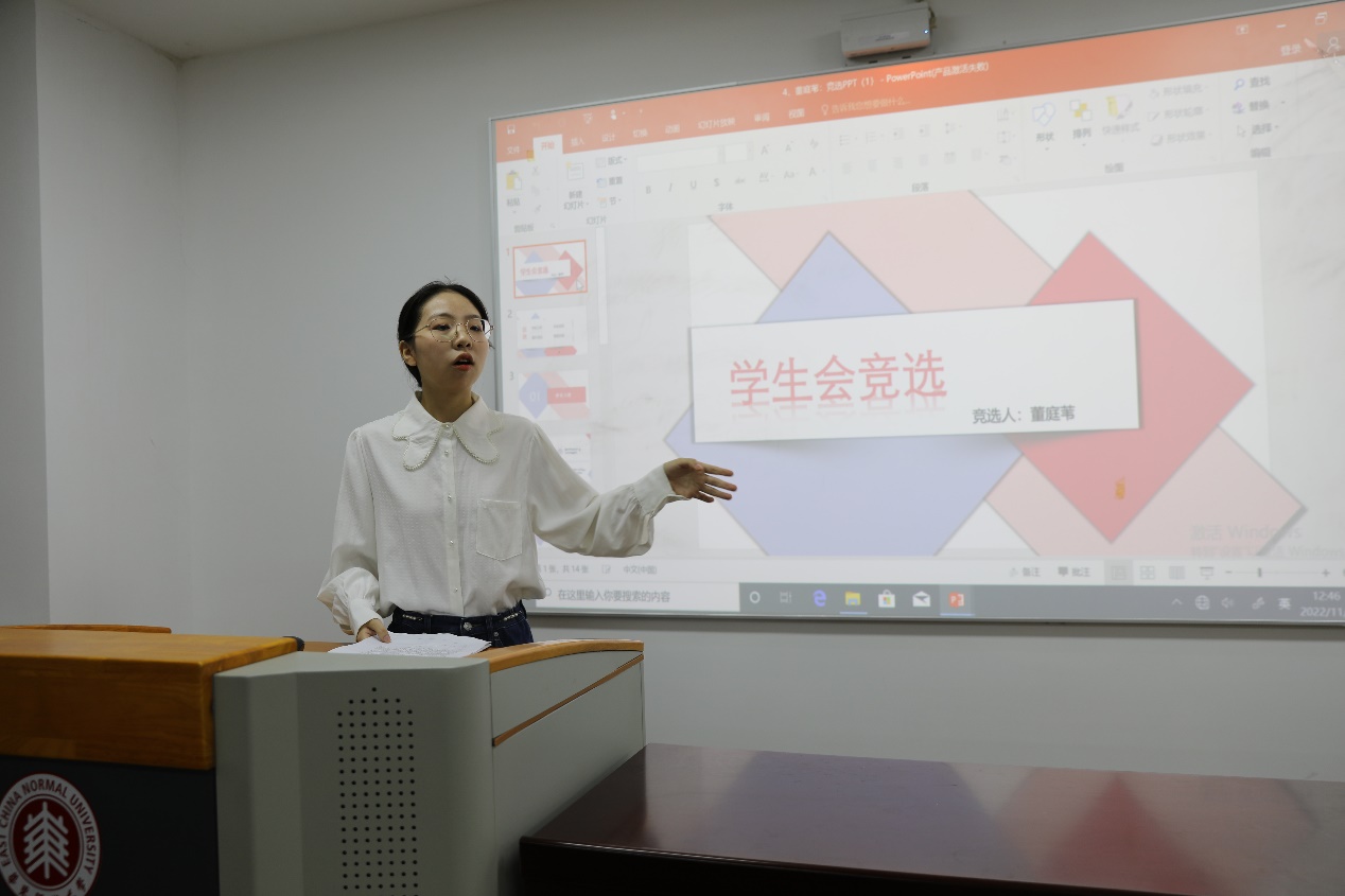 在主席团竞选环节,冯老师首先向大家介绍了学院第一届学生会主席团候选人,包括李佳润、金嘉仪、董庭苇、袁子衿和焦林翔五位。紧接着,主席团候选人按抽签顺序依次上台发表竞选演讲,并接受提问。