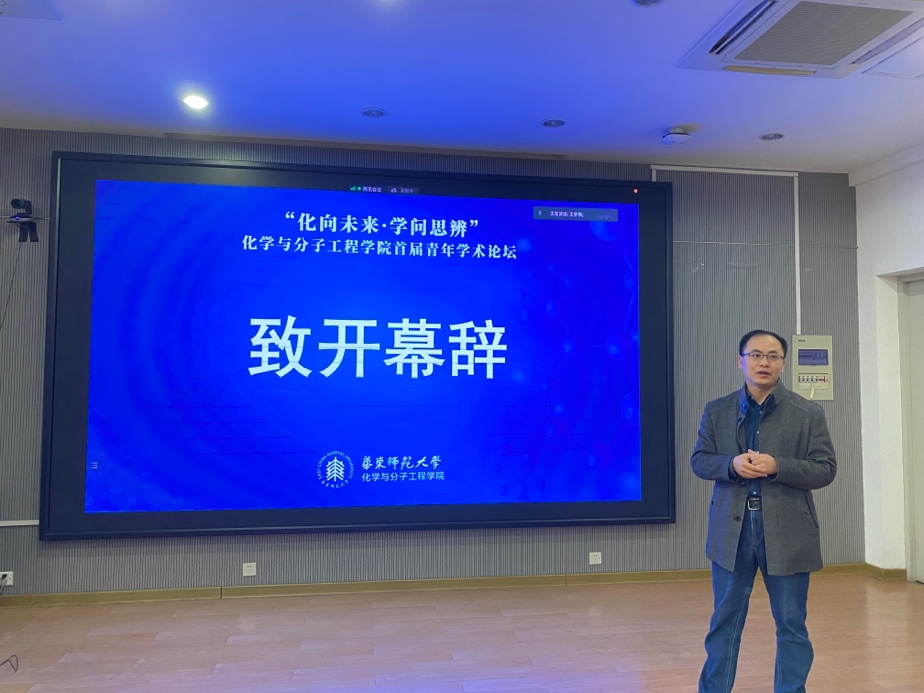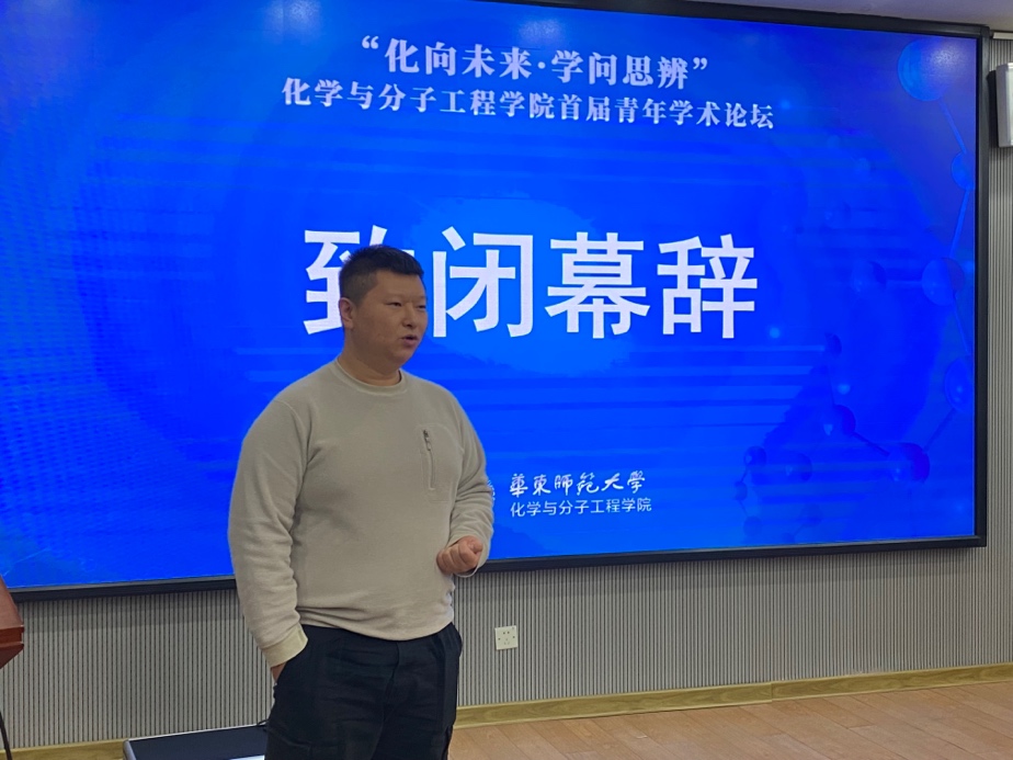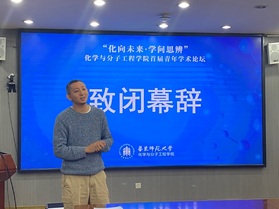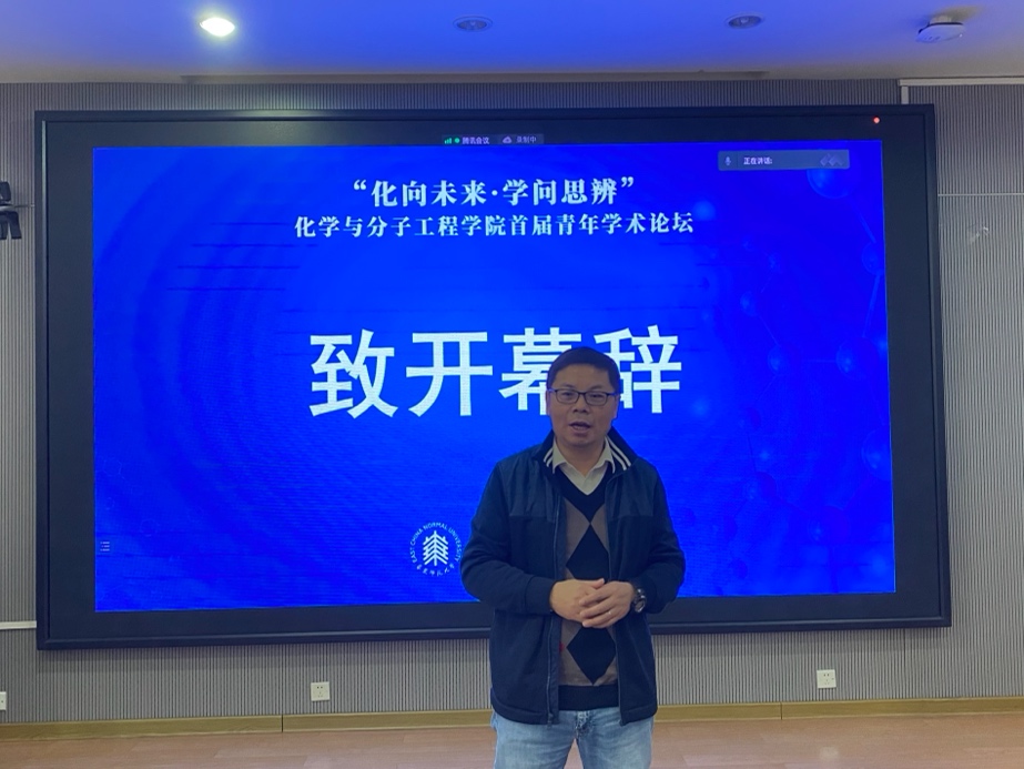 论坛伊始,院党委书记鲜跃仲老师致开幕辞,鲜老师首先对到场师生表示感谢,期待大家在此次学术交流中碰撞出思想的火花。其次,鲜老师提到党的二十大报告中指出高质量发展是全面建设社会主义现代化国家的首要任务,而“教育、科技、人才是全面建设社会主义现代化国家的基础性、战略性支撑”,加快实现高水平科技自立自强,青年学生责无旁贷,要静下心来做出原创新引领性的成果,以实际行动践行二十大精神。最后,鲜老师借用习近平总书记在党的二十大报告中寄语广大青年的话,勉励化院学子“怀抱梦想又脚踏实地,敢想敢为又善作善成”,努力成为“有理想、敢担当、能吃苦、肯奋斗”的新时代好青年。