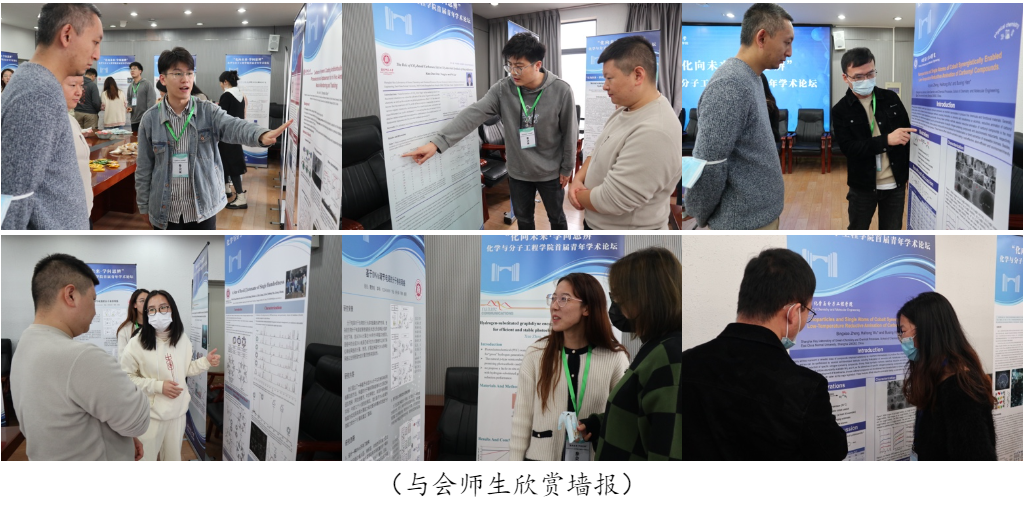 除现场口头报告,本次论坛还设置墙报展示环节,论坛举办前面向全院学生征集墙报展示作品,最终遴选出14份墙报作品进入论坛展示环节。在化学馆A305会议室,墙报作者对作品进行详细讲解,同时与评委老师、参会同学进行热烈讨论和交流。活动吸引了很多前来参观学习和交流的同学,他们驻足欣赏每一份精美的墙报作品并就相关学术问题进行深入讨论。