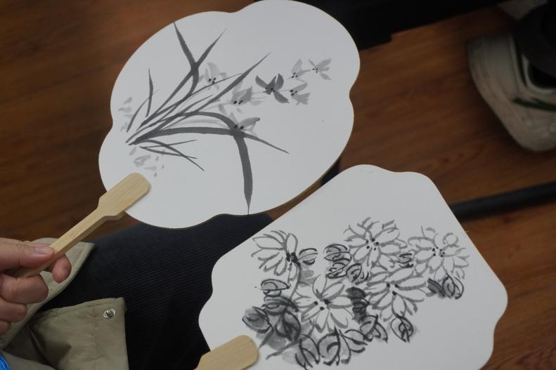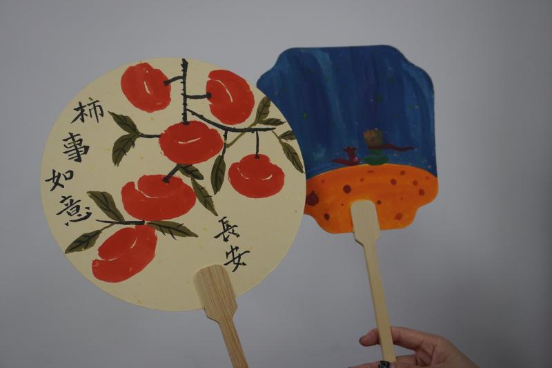 做手工一直是同学们喜欢的元宵节活动。在绘制团扇环节,伴随着音乐,只见大家在网上搜索了精美的团扇图案,仔细比对着大小,然后拿起画笔,蘸取清水与颜料,对照着参考图纸,小心翼翼地在团扇上临摹、涂色,没多久,一个漂亮的团扇就绘制好了。