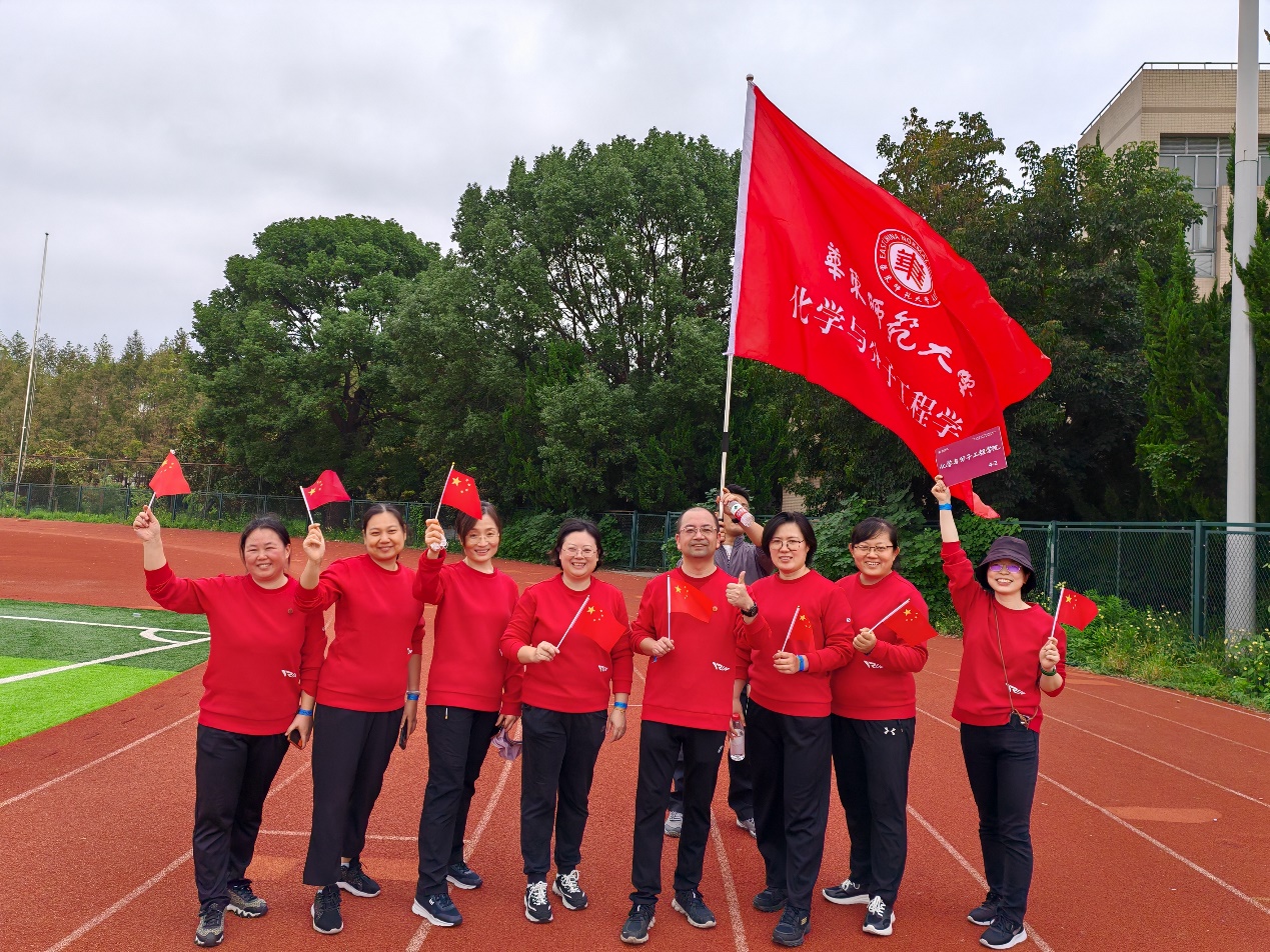 “活力健步走”是此次运动会的新项目,不仅活力满满且意义颇丰,全校教职工代表在校领导的引领下,高举旗帜,以奋发的姿态,按既定的校园路线大步向前,寓意与祖国同行,庆祝新中国成立75周年。化院的老师们用永攀高峰的科研精神,紧跟校领导的大旗,真可谓是冲锋在前,派出的三个代表队中,一队获得一等奖,一队获得三等奖。