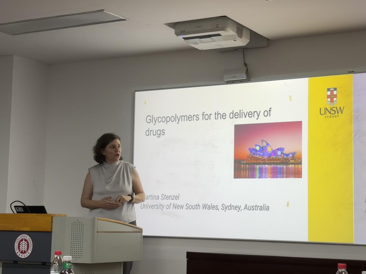 Martina Stenzel院士1999年于德国斯图加特大学应用高分子化学研究所获得博士学位,后在新南威尔士大学开展独立研究工作,并于2018年当选为澳洲科学院院士。她在功能性聚合物纳米粒子的合成及其作为药物递送载体的用途上取得了显著成就。在报告中,她介绍了一系列基于糖聚合物的不同尺寸的纳米粒子,并探讨了纳米颗粒表面碳水化合物如何促进哺乳动物细胞对其的吸收,讨论了这些粒子在药物递送中的应用。