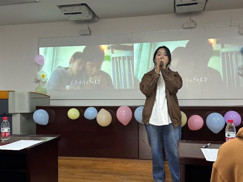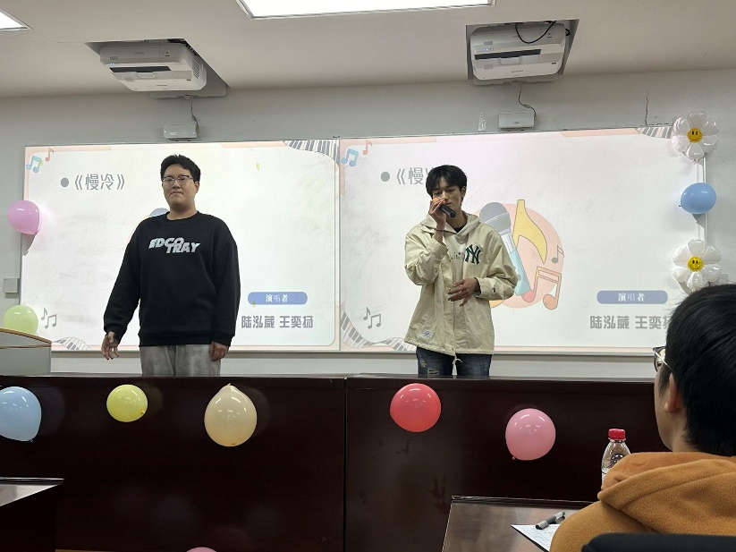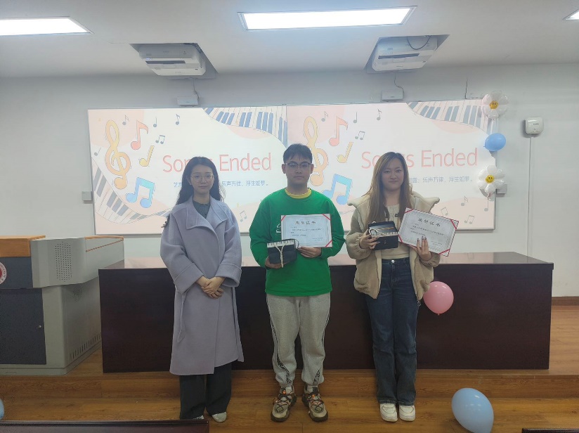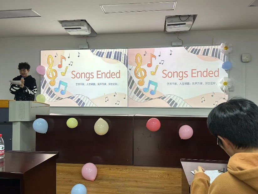 比赛结束后,在等待分数的间隙,主持人用猜歌识曲游戏活跃现场气氛,观众们踊跃作答,气氛热烈柳陈柯雨同学为现场即兴演唱了一曲Loser