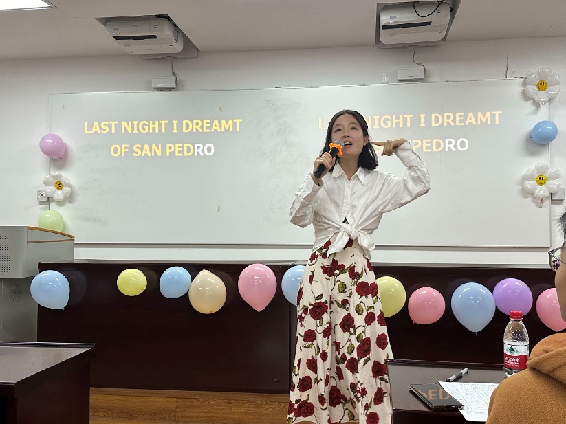 袁思珩同学带来的歌曲《La islaBonita》,歌曲里多种打击器乐的融合让人耳目一新歌声也显得清脆利落