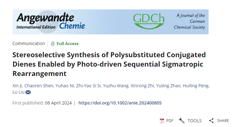 相关成果以“Stereoselective Synthesis of Polysubstituted Conjugated Dienes Enabled by Photo-driven Sequential Sigmatropic Rearrangement”为题于2024年4月8日在线发表于Angewandte Chemie International Edition上(DOI: 10.1002/anie.202400805)。91视频 2020级博士研究生纪鑫为论文第一作者,沈超仁副研究员为共同一作,2023级硕士生倪宇豪(大二进组)也是共同一作,刘路教授为论文通讯作者。该项工作得到了国家自然科学基金科学委和科技部项目资助。
