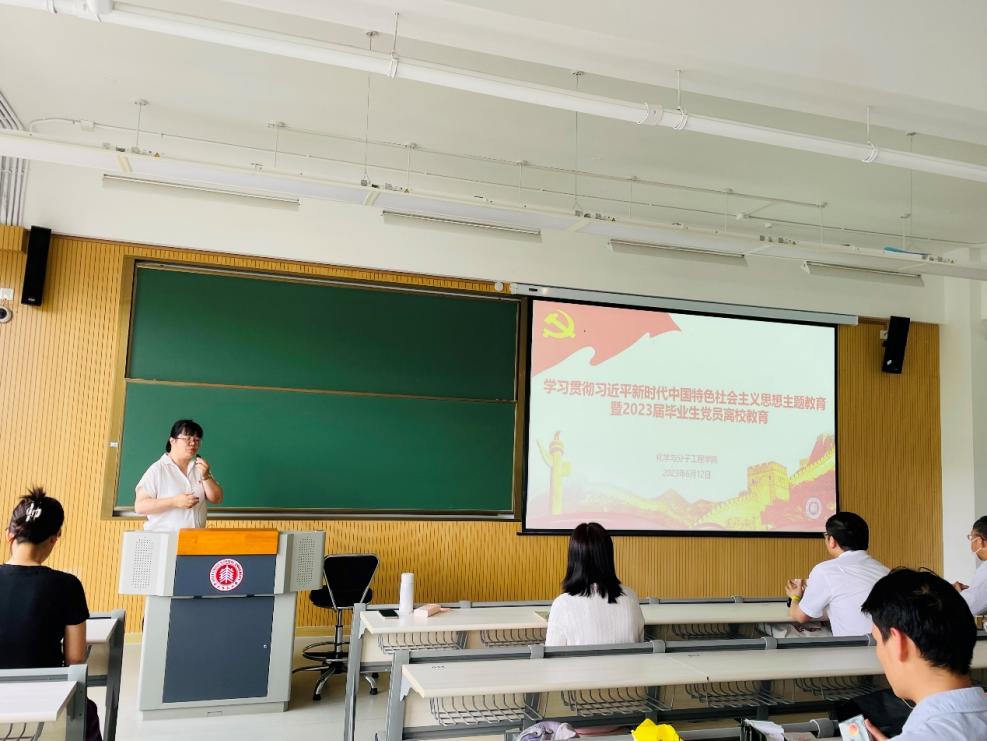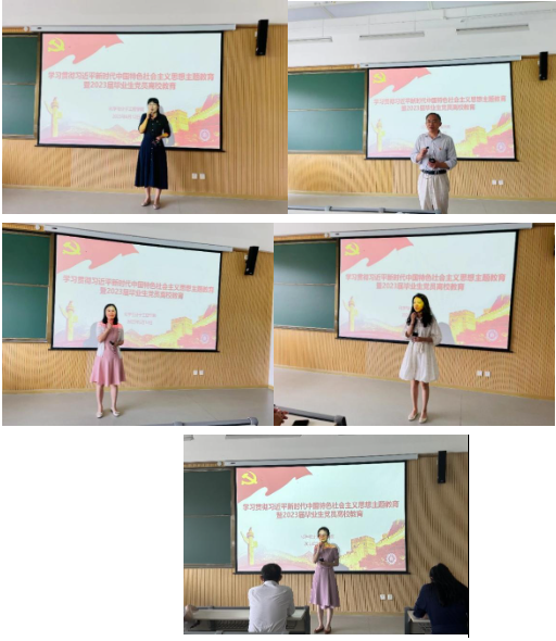 为深入学习贯彻习近平新时代中国特色社会主义思想,加强2023届毕业生党员离校教育,2023年6月12日下午,91视频 党委在闵行校区第四教学楼202教室为毕业生党员上了在校的最后一次党课,教育引导毕业生党员用习近平新时代中国特色社会主义思想武装头脑,在新的起点上不断增强党性修养,在新的岗位上发挥好先锋模范作用。学院党委书记鲜跃仲,党委委员、副院长王媛媛,党委委员谢美然,马克思主义学院教师李小玲,专职组织员曹美萍,院团委书记、研究生辅导员冯琪和本科生辅导员史琳参加,党委副书记王婷婷主持会议。