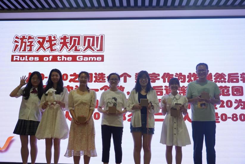 晚会节目结束后,现场开展了最后一轮游戏——“倒着说”。参赛者们需要将主持人的话反着说,“嘴瓢”的时候让现场观众笑声不断。随着抽奖环节一等奖的揭晓和毕业感言的抒发,本次晚会也画上了圆满的句号。